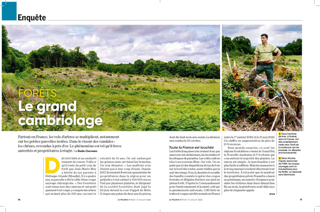 Les forêts françaises n’en avaient donc pas assez avec les sécheresses, les incendies et les attaques de parasites. Les voilà confrontées à un nouveau fléau : les vols. On ne parle pas ici des disparitions de tas de bois sur le bord des routes, aussi vieilles que la nuit des temps. Non, la dernière trouvaille des bandits consiste à opérer des coupes brutales et illégales d’arbres sur pied en pleine forêt. D’après le Commandement pour l’environnement et la santé, créé par la gendarmerie nationale, 1 185 faits de trafics et coupes ont été recensés en France entre le 1er janvier 2023 et le 31 mai 2025.